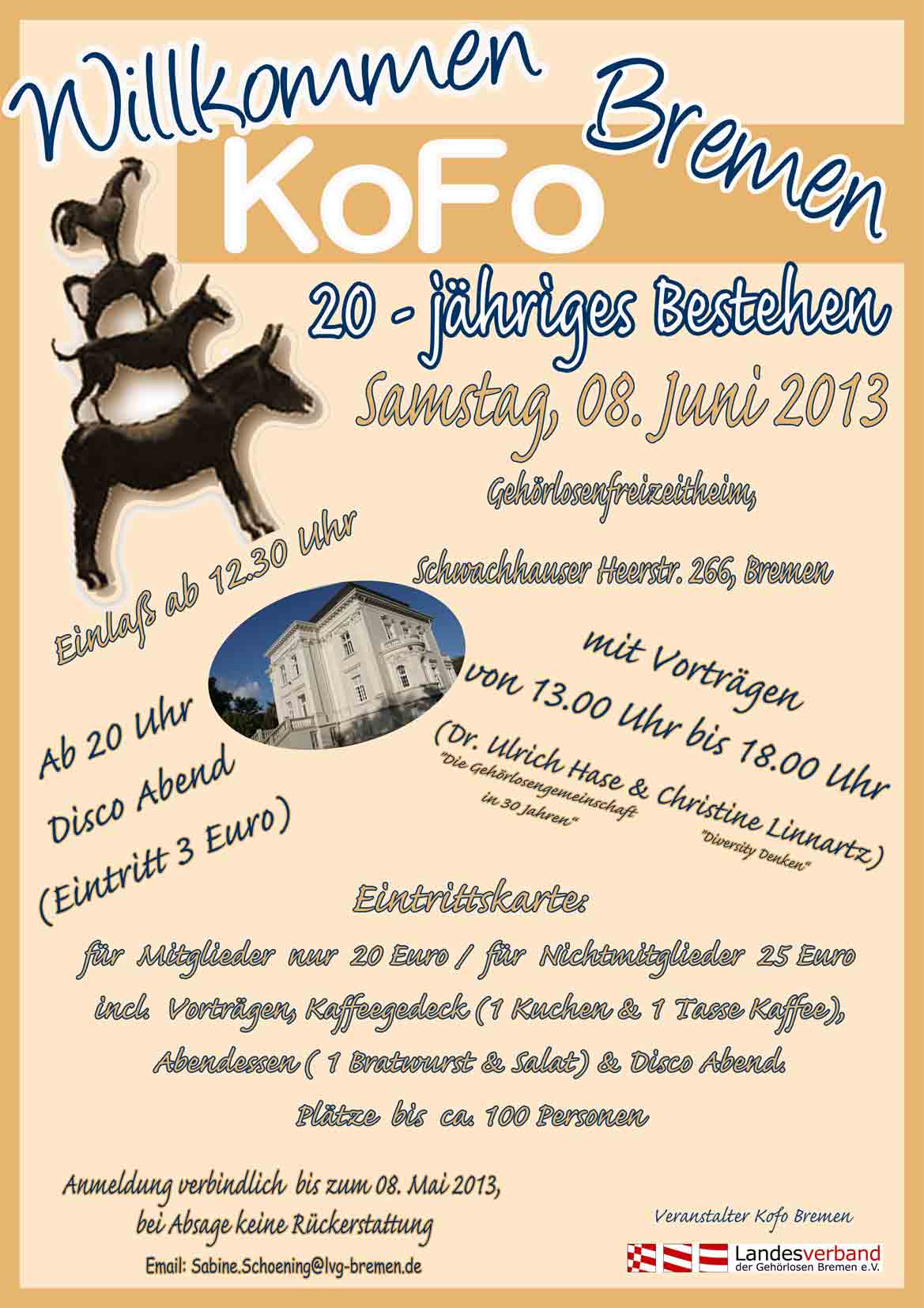 Das Kofo Bremen feiert am 08. Juni 2013 (von 13 bis 18.00 Uhr) sein 20-jähriges Bestehen mit Vorträgen von