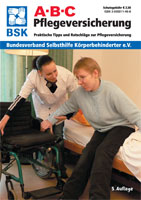 Der Bundesverband Selbsthilfe Körperbehinderter e.V. (BSK) hat jetzt die neue Auflage der Beratungsbroschüre ABC Pflegeversicherung herausgegeben. Für Menschen mit Körperbehinderung und deren Angehörige enthält der Ratgeber viele nützliche Tipps und Informationen zur Pflegeversicherung. In drei Kapiteln werden die Themen Rechte und Pflichten für Versicherte, selbstbestimmte Assistenz sowie die Pflegebedürftigkeits-Richtlinien erläutert.