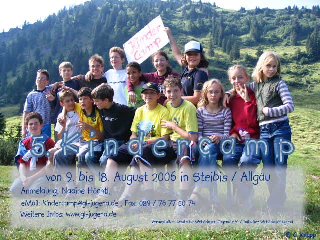 DGJ und IGJ führen in diesem Jahr ihr 5. Kindercamp durch. Es findet vom 09. bis 18. August 2006 in Steibis/ Allgäu statt.