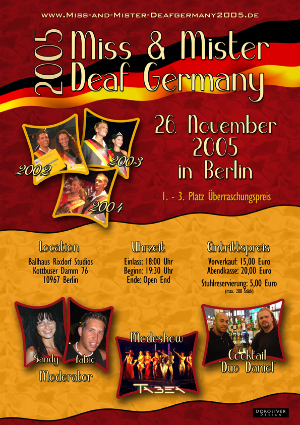 Infos und Tickets gibt es unter www.miss-and-mister-deafgermany2005.de