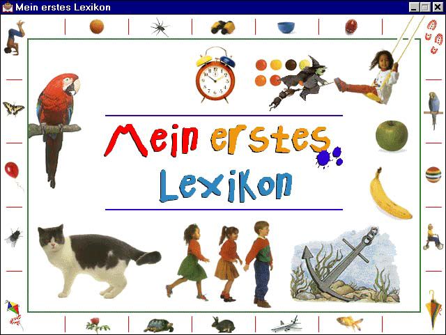 Bereits der Titelbildschirm von MEIN ERSTES LEXIKON ist gespickt mit bunten Bildchen und (hier nicht darstellbaren) Animationen.