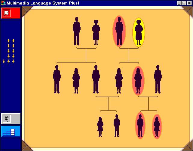 In der Abteilung "Stammbaum" (leider auch nicht im "Lesen"-Modus erreichbar) werden Verwandtschaftsbezeichnungen erläutert und geübt. Man wählt den Umfang der Familie und die Startperson aus. In Relation zu dieser Person werden dann die Verwandtschaftsbezeichnungen erläutert bzw. auf dem nächsten Level dann geübt. ("Das ist Anke. Wer ist ihr Onkel?")
